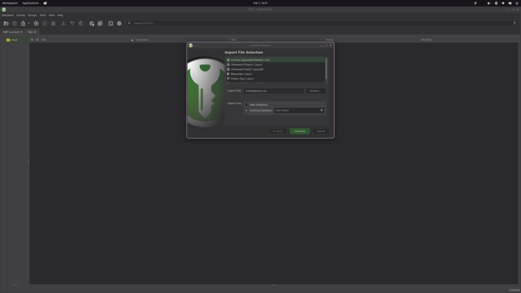 Étape 2: Créer une base KeepassXC et importer les mots de passe